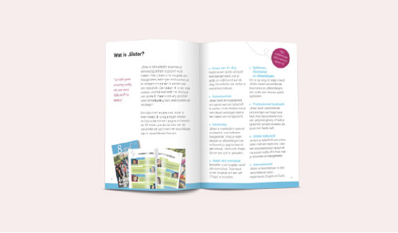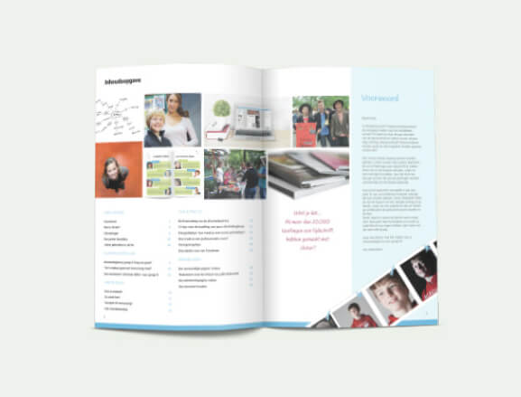 Ontwerp A6 promotiegids Deze promotiegids in broekzak-formaat is een handig promotiemiddel op beurzen. Deze promotiegids staat vol met inspirerende verhalen, handige tips en praktische informatie. Ook hebben we de A6 promotiegidsen, samen met een persoonlijke brief, verstuurd naar basisscholen in Nederland.
