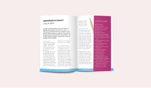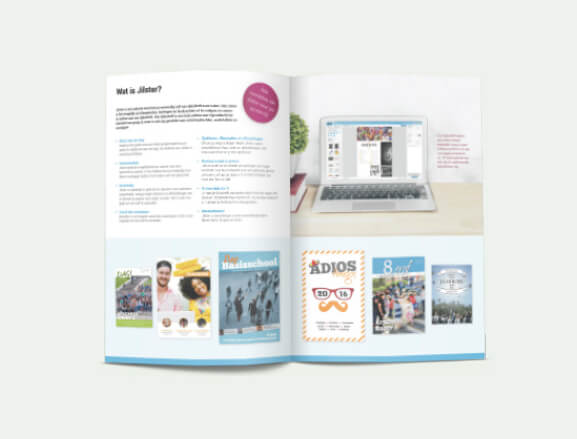 Ontwerp Werkboek Via onze website bieden we het werkboek ‘afscheid groep 8’ aan. Deze kunnen de klanten van Jilster gratis downloaden en gebruiken als leidraad en inspiratiebron voor het maken van een afscheidstijdschrift. In dit tijdschrift vind je veel handige informatie, bruikbare werkbladen, tips & tricks en nog veel meer.
