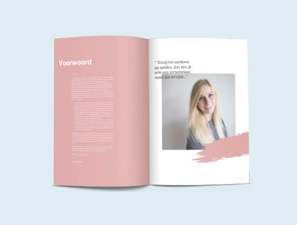 Het uiteindelijke doel was om jezelf te vertalen naar een persoonlijk merk. Ik sla mijn boekje open en laat je kennis maken met wie ik ben, hoe ik in elkaar steek en wat ik te bieden heb. Dit alles komt met een thema, die in alle visuele uitingen tot uiting komt, namelijk: