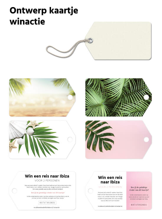 Deze kaartjes dienen natuurlijk als reclamemiddel, maar de gelukkige vinder van het kaartje maakt daarbij ook kans op een ontspannende reis waar ze ‘alles even lekker kunnen loslaten’.